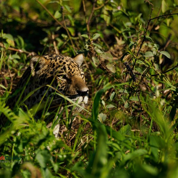 We spent two full days exploring the rivers by boat in search of the mighty jaguar (Panthera onca). We were thrilled with prolonged sightings of two large males and one active female moving along the riverbanks — a true wildlife spectacle!